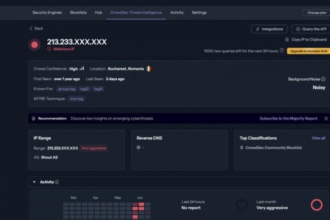 Pour rappel Crowdsec propose une solution de pare-feu open source basé sur le comportement et la réputation via de la reconnaissance d’adresses IP malveillantes par sa communauté d’utilisateurs.