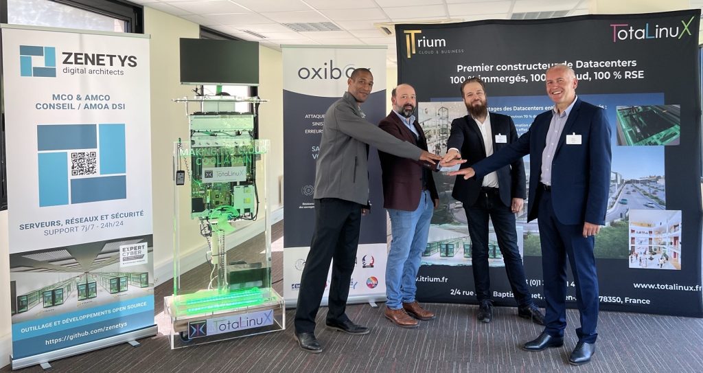 Merci à Frédéric DELPEYROUX (CEO de TotaLinuX et Co-fondateur d’ITrium® Green & Cloud) et aux équipes TotaLinuX pour la confiance qu’ils nous accordent en nous proposant d’opérer le service managé et l’infogérance de cette vitrine technologique de l’Immersion Cooling.